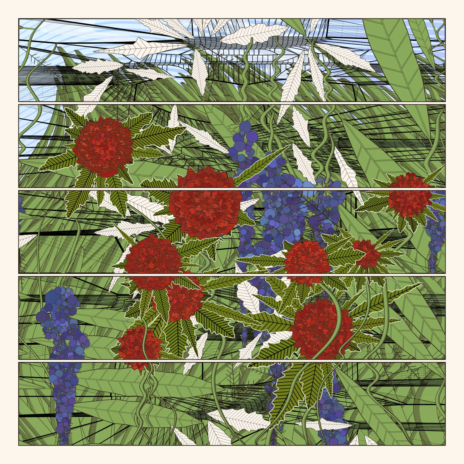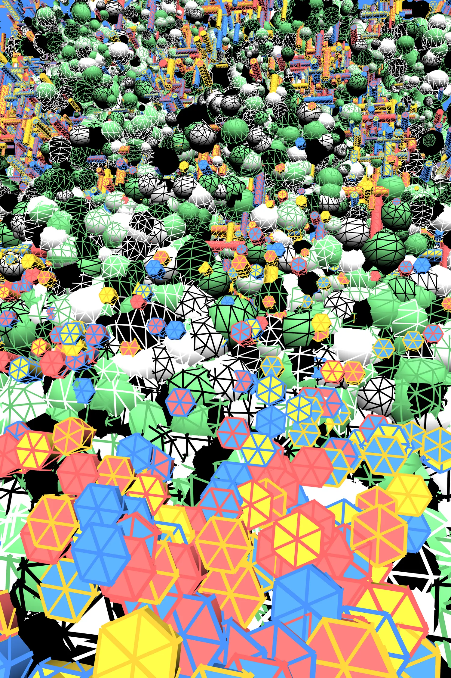 Ryan Bell is a software engineer, visual artist, and musician living in Las Vegas, NV. His visual artwork explores themes of radical complexity, recursion, and playfulness. He describes his process as inventing new software tools to solve interesting technical challenges which yield colorful, sophisticated visual forms.
